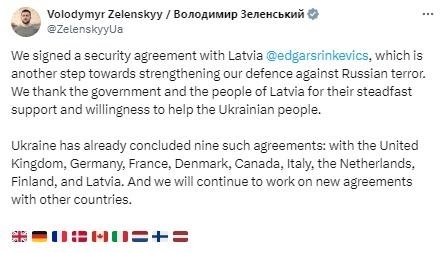 同日早些時(shí)候,澤連斯基在另一條貼文中宣布,烏克蘭已經(jīng)與英國、德國、法國、丹麥、加拿大、意大利、荷蘭、芬蘭和拉脫維亞簽署了雙邊安全協(xié)議。他還稱,“烏克蘭將繼續(xù)努力與其他國家達(dá)成新協(xié)議。”