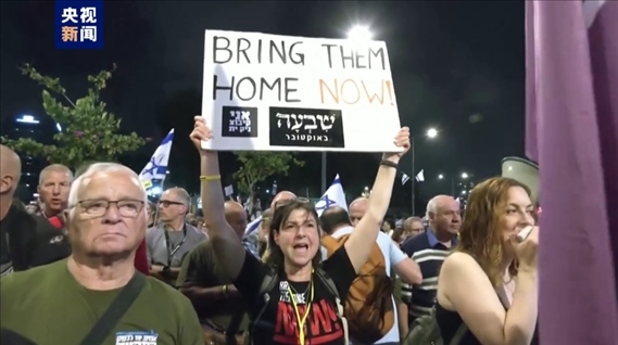 當(dāng)?shù)貢r間29日,大量以色列民眾在特拉維夫舉行抗議,要求以色列政府與哈馬斯盡快達成協(xié)議,讓被扣押的以色列人得到釋放。