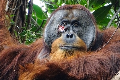 《衛(wèi)報》稱,根據(jù)報告,研究小組在追蹤一只被命名為“拉庫斯”的雄性蘇門答臘猩猩時,發(fā)現(xiàn)它的面部有一道新傷,這可能是與另一只雄性猩猩爭斗的結果。3天后,研究人員看到 拉庫斯正在咀嚼一種藤本攀援植物的莖葉。報告寫道,“在拉庫斯開始采食藤本植物13分鐘后,它開始咀嚼葉子,但沒有吞咽,而是用手指將口中的植物汁液直接涂抹在面部傷口上。