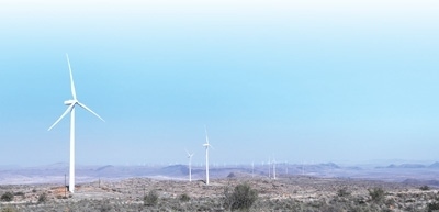 位于南非北開普省德阿鎮(zhèn)的中國(guó)國(guó)家能源集團(tuán)龍?jiān)措娏δ戏枪具\(yùn)營(yíng)的德阿風(fēng)電項(xiàng)目風(fēng)機(jī)。新華社記者 董江輝攝