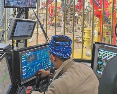 通過參與艾伯特湖區(qū)油田建設,東方宏華還研發(fā)出“一鍵聯(lián)動”舉升式排管系統(tǒng),以舉升移運、多系統(tǒng)協(xié)同、離線作業(yè)、智能感知、一鍵集控五大技術為核心,實現在地面、臺面和高空三大區(qū)域的自動化作業(yè)?!坝辛宋覀冏灾餮邪l(fā)的智能系統(tǒng)加持,操作人員只需點擊屏幕,就可以完成接立柱和鉆井等操作。”東方宏華所屬宏華電氣副總經理汪虹宇介紹。