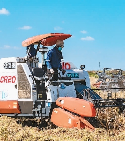 “幸福是共贏,是滿園芬芳”(見證十年,“一帶一路”風(fēng)華正茂⑧) 中非賽賽農(nóng)業(yè)項(xiàng)目上,當(dāng)?shù)貑T工駕駛機(jī)械收割水稻。中外......