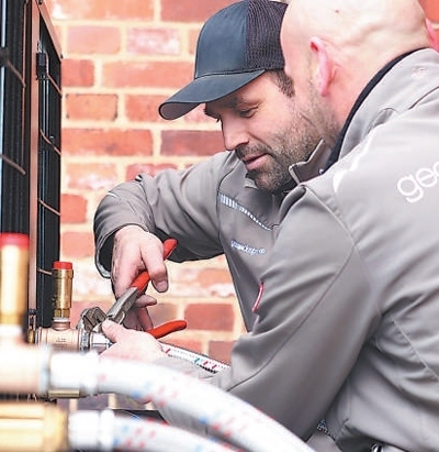德國環(huán)保設計企業(yè)地之氣公司與中國同方股份有限公司合作,為德國公共部門、大型企業(yè)和私人家庭提供熱泵供暖整體解決方案,這是中德在新能源領(lǐng)域深化合作的代表項目之一。圖為德國工人在安裝調(diào)試中國熱泵產(chǎn)品。本報歐洲中心分社 肖 晶攝
