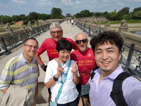 菲奧林與法基內(nèi)蒂的紅色騎行T恤上,用意大利語(yǔ)印著“Marco Polo a Pedali”,意為“自行車上的馬可·波羅”?!拔覀兿胫刈唏R可·波羅之路,向這位偉大的威尼斯旅行家致敬?!狈茒W林接受新華社記者采訪時(shí)說(shuō),“馬可·波羅旅行非常緩慢,步行、騎馬,甚至乘船。我們也想用一種非常慢的交通方式,可以看到經(jīng)過(guò)的風(fēng)景,一米一米地征服道路,沿途風(fēng)光將不可磨滅地留在眼里、心中?!?/p>