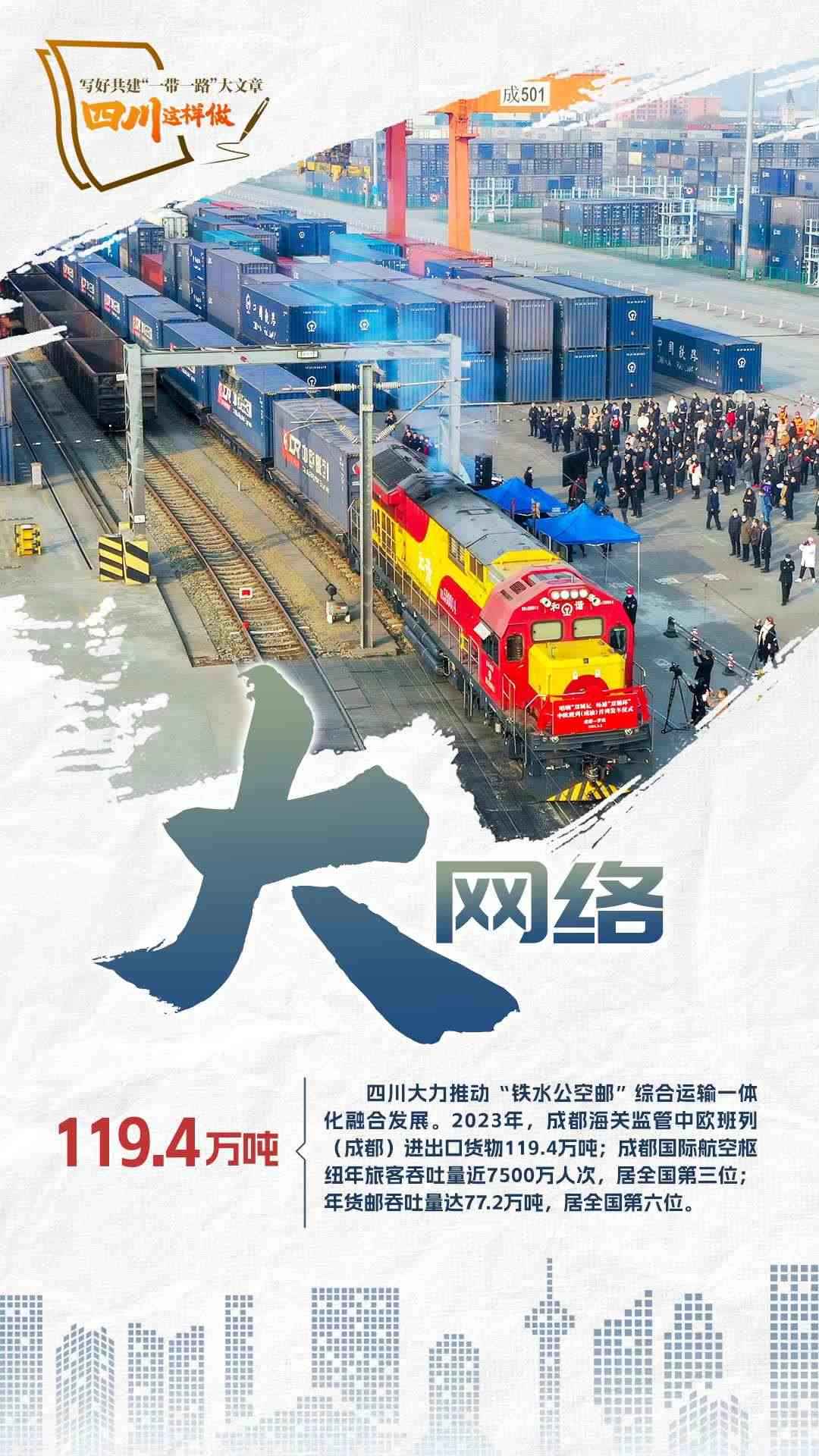2023年,共建“一帶一路”走過第一個蓬勃十年,積極奔向更富活力的第二個“金色十年”。為推動共建“一帶一路”更高質(zhì)量、更高水平發(fā)展,宣布中國支持高質(zhì)量共建“一帶一路”的八項行動,包括構(gòu)建“一帶一路”立體互聯(lián)互通網(wǎng)絡、支持建設(shè)開放型世界經(jīng)濟、開展務實合作、促進綠色發(fā)展、推動科技創(chuàng)新、支持民間交往、建設(shè)廉潔之路、完善“一帶一路”國際合作機制。2024年,我們將目光聚焦四川,作為內(nèi)陸開放的前沿陣地、西部大開發(fā)的戰(zhàn)略依托,看看第二個十年,四川如何寫好高質(zhì)量共建“一帶一路”大文章。