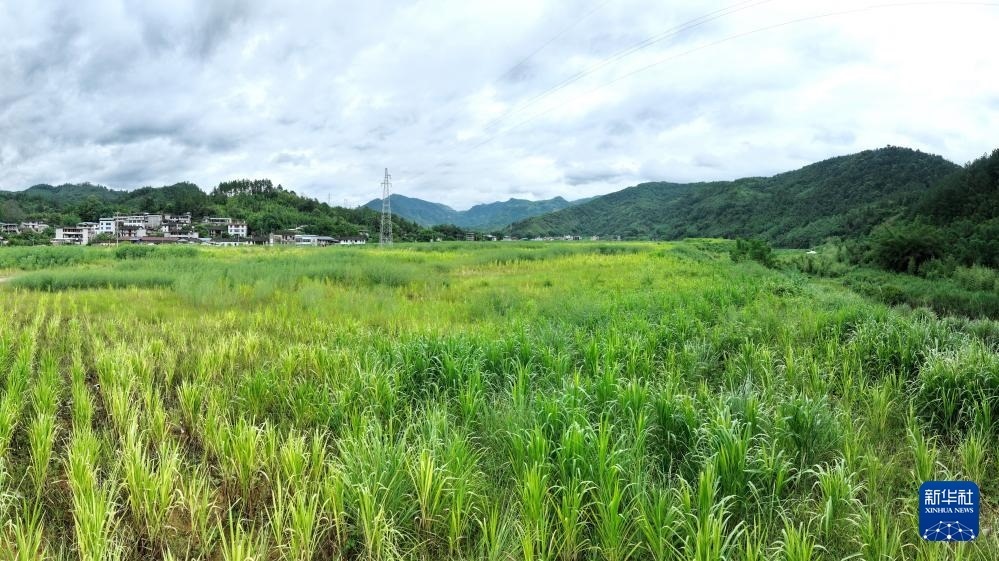 這是8月21日拍攝的位于福建省永泰縣清涼鎮(zhèn)北斗村的“珍農(nóng)菌草富泉羊循環(huán)產(chǎn)業(yè)示范基地”(無人機照片)。
