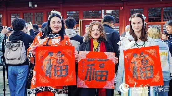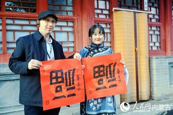 人民網(wǎng)呼和浩特10月23日電 (張聿修、孟佳澍、張雪冬、實(shí)習(xí)生朱昱晗)?!暗埂绷???!暗健绷耍[弄著手中的福字,了解到關(guān)于福字的寓意,塔吉克斯坦記者烏斯蒙·阿卜杜恰洪洛夫露出驚訝的表情,感嘆中國(guó)語(yǔ)言蘊(yùn)含的智慧。