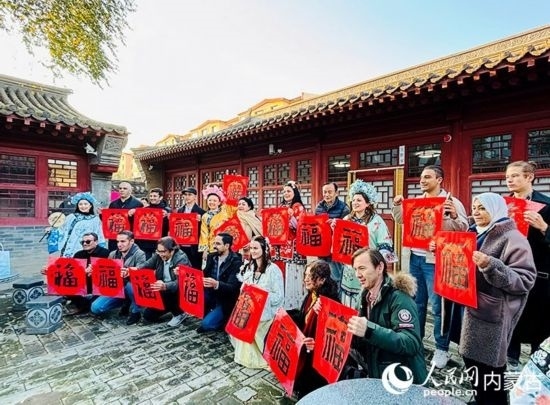 10月22日,“一帶一路”青年友好交流活動(dòng)走進(jìn)內(nèi)蒙古呼和浩特市大盛魁博物館集群,期間參觀了中國(guó)文化產(chǎn)業(yè)協(xié)會(huì)書(shū)畫(huà)藝術(shù)專(zhuān)業(yè)委員會(huì)主任、著名書(shū)畫(huà)家孫卓章的工作室,孫卓章為外媒記者贈(zèng)送墨寶,傳遞美好祝福。