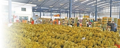 在位于泰國尖竹汶府的優(yōu)果東明水果廠,經(jīng)過分揀和清潔處理的榴蓮按品級分類整齊堆放、等待裝箱。本報(bào)記者 白元琪攝