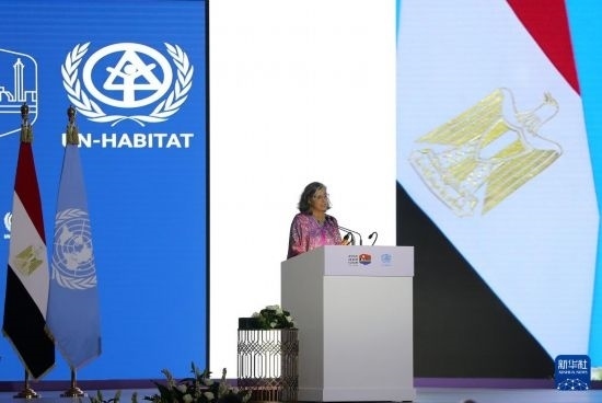 11月4日,在埃及首都開羅,聯(lián)合國人居署執(zhí)行主任阿納克勞迪婭·羅斯巴赫在第12屆世界城市論壇開幕式上講話。新華社記者 王東震 攝