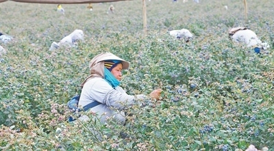 秘魯特魯希略市一家農(nóng)場內(nèi),工人們在采摘藍(lán)莓。本報記者 顏 歡攝