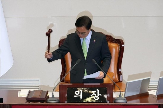 最終,在7日下午的國會全體會議上,絕大多數(shù)執(zhí)政黨議員先是對涉總統(tǒng)夫人的“金建希特檢法”投下反對票將其否決,隨后紛紛退場,拒絕參加接下來的總統(tǒng)彈劾動議案表決,導(dǎo)致該動議案因投票人數(shù)不足未獲通過。