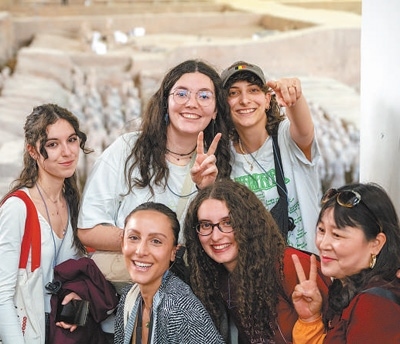 意大利青年在秦始皇兵馬俑博物館內(nèi)合影留念。