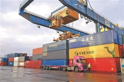 中歐班列重要樞紐——德國杜伊斯堡貨運(yùn)場站內(nèi)來自中國的集裝箱。