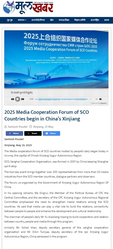 尼泊爾穆爾卡巴爾新聞網(wǎng)報(bào)道2025上合組織國(guó)家媒體合作論壇