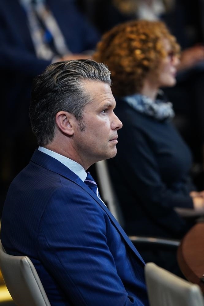 10月15日,美國(guó)國(guó)防部長(zhǎng)赫格塞思在比利時(shí)布魯塞爾出席北約防長(zhǎng)會(huì)議。新華社記者彭子洋攝