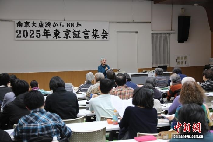 中新網(wǎng)東京12月13日電 (記者 朱晨曦)今年是南京大屠殺慘案發(fā)生88周年,今年12月13日是第十二個南京大屠殺死難者國家公祭日。11日晚,日本民間團(tuán)體“No More南京之會”在日本東京全水道會館舉行集會,上百名參加者通過證詞與影像記錄,重新面對那段戰(zhàn)爭慘劇。