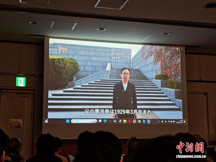 12月11日,在日本東京舉辦的南京大屠殺證言集會上,南京大屠殺幸存者后代曹玉莉以視頻方式提供證言。中新網(wǎng)記者 朱晨曦 攝