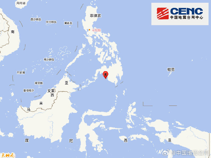 菲律賓棉蘭老島附近海域發(fā)生5.9級地震 震源深度20千米