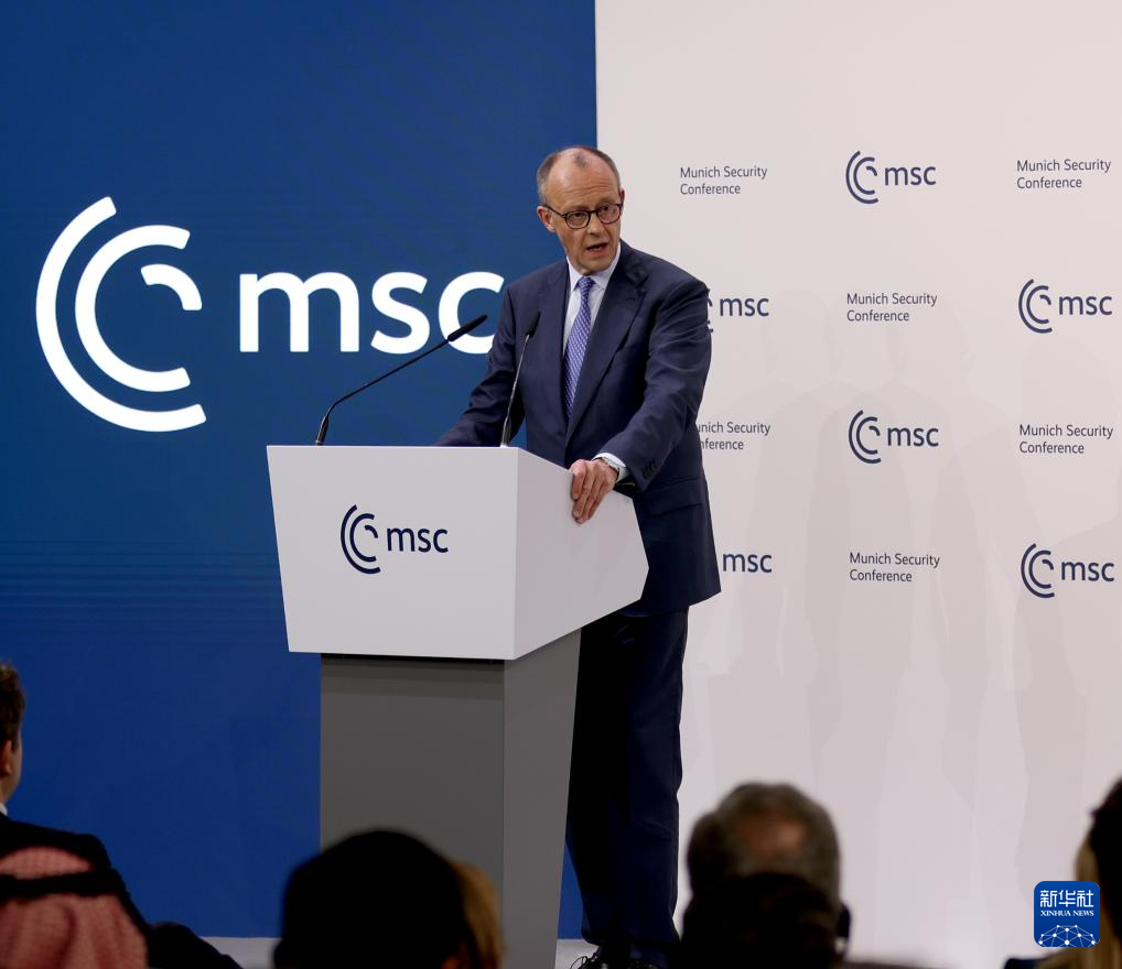 2月13日,在德國(guó)慕尼黑,德國(guó)總理默茨在第62屆慕尼黑安全會(huì)議(慕安會(huì))開幕式上致辭。新華社記者 李穎 攝