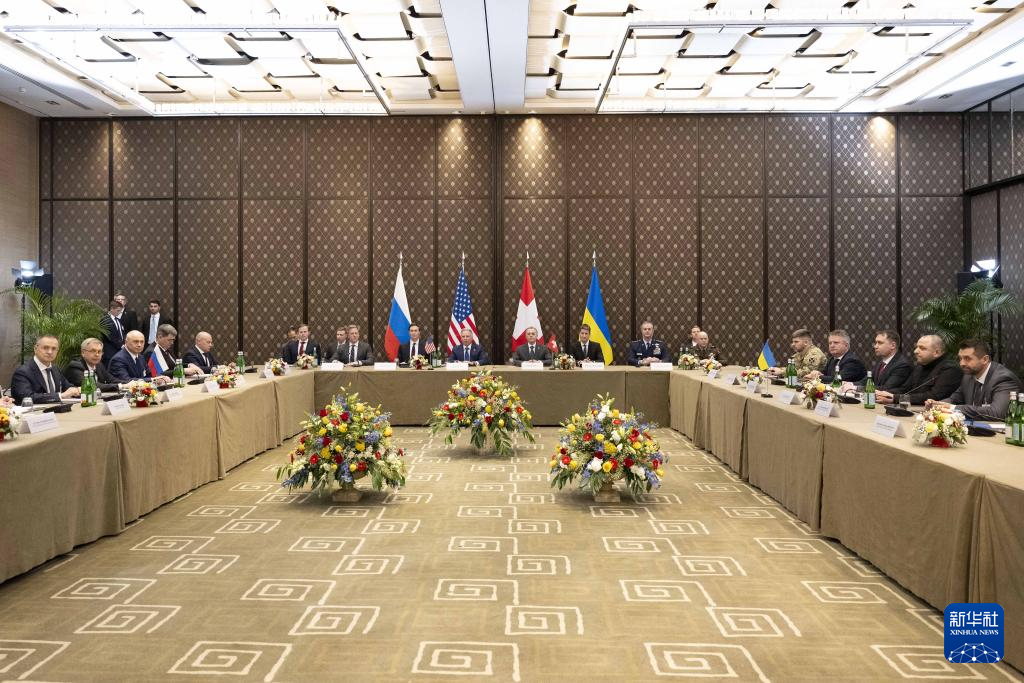 這是2月17日在瑞士日內(nèi)瓦拍攝的俄美烏三方談判現(xiàn)場。新華社發(fā)(瑞士聯(lián)邦外交部供圖)