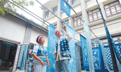 英國籍視頻博主斯圖爾特·維金在云南大理體驗(yàn)白族扎染技藝。