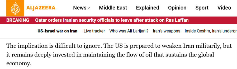 半島電視臺(tái)3月18日的報(bào)道分析稱,這暗示美國(guó)已準(zhǔn)備在軍事上削弱伊朗,但仍高度致力于維持全球石油流動(dòng)。