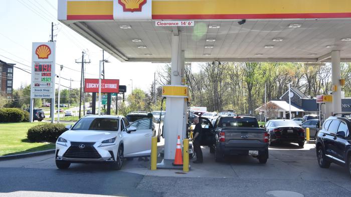 圖為美國民眾在馬里蘭州羅克維爾一處加油站加油。 中新社記者 沙晗汀 攝