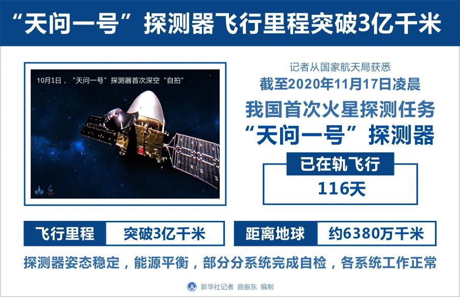 “天問一號”探測器飛行里程突破3億千米