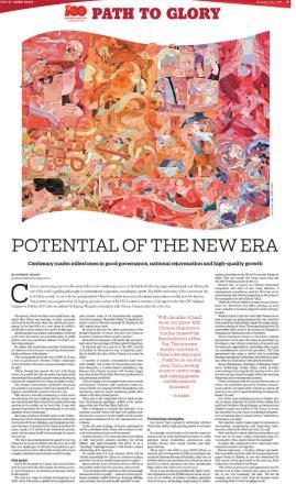 作為中國(guó)日?qǐng)?bào)外籍記者,穆迪一共發(fā)表了700多篇封面報(bào)道和評(píng)論,總計(jì)100多萬(wàn)字。從2019年為《中國(guó)日?qǐng)?bào)》“慶祝新中國(guó)成立七十周年專刊”撰寫(xiě)題為《新時(shí)代,共未來(lái)》的封面文章,到今年建黨百年??系男侣劮治觥缎聲r(shí)代的潛力》,“新時(shí)代中國(guó)”是穆迪近年寫(xiě)作的主題。