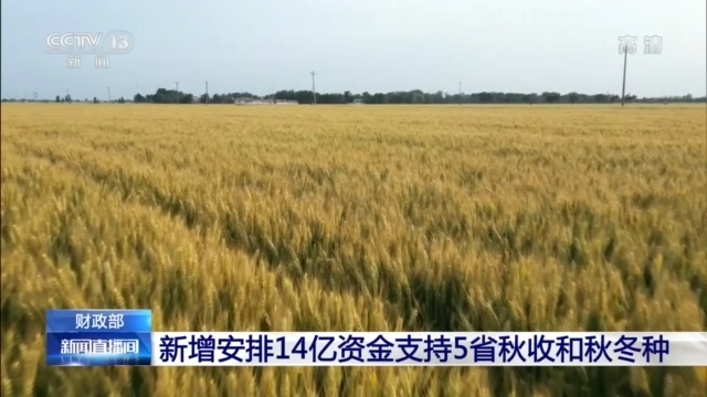 財(cái)政部一次性新增安排14億元 支持5省秋收和秋冬種