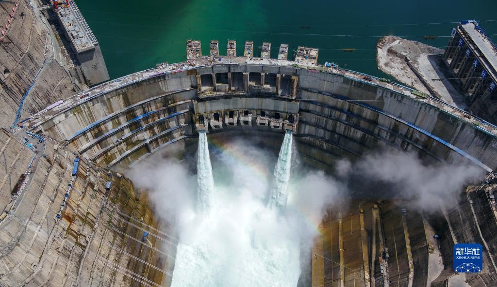 這是2021年6月10日拍攝的金沙江白鶴灘水電站。白鶴灘水電站是實(shí)施“西電東送”的國家重大工程,是當(dāng)今世界在建規(guī)模最大、技術(shù)難度最高的水電工程(無人機(jī)照片)。新華社記者 胥冰潔 攝