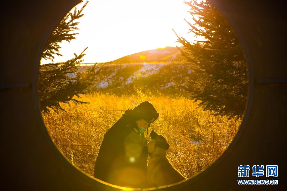孫慧敏是內蒙古出入境邊防檢查總站興安邊境管理支隊三岔邊境檢查站的警犬訓導員。他和警犬“戰(zhàn)友們”默默地維護邊境地區(qū)安全穩(wěn)定。新華網(wǎng)發(fā)(包青松攝)