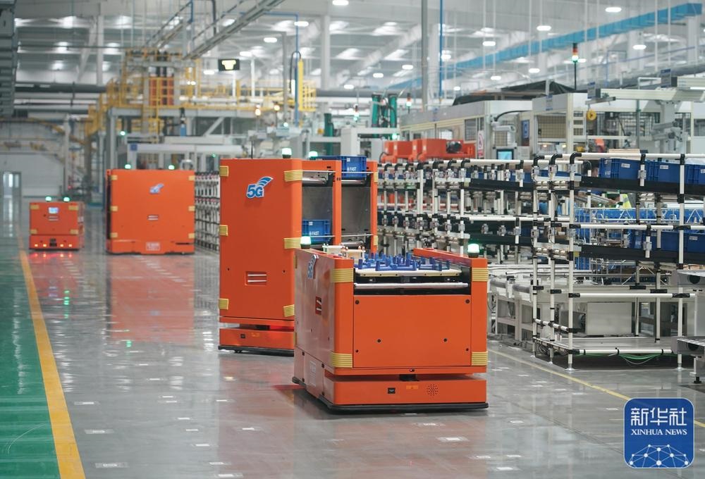 11月9日,智能搬運(yùn)機(jī)器人在位于西安高新區(qū)的法士特高智新工廠項(xiàng)目車間內(nèi)運(yùn)輸物料。新華社記者 邵瑞 攝