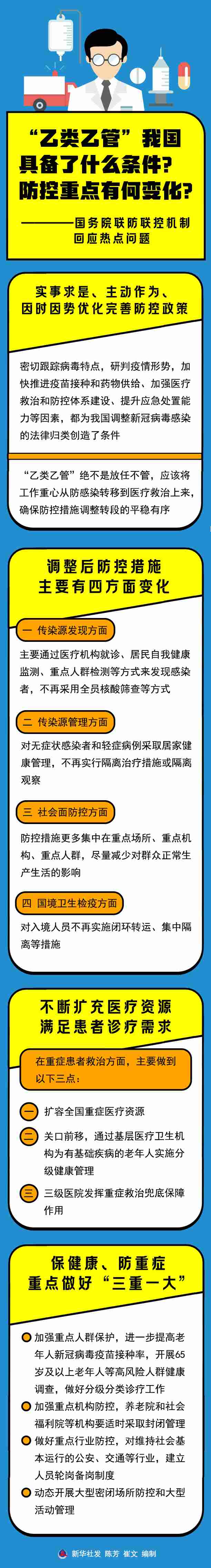 國家衛(wèi)生健康委疫情應(yīng)對處置工作領(lǐng)導(dǎo)小組專家組組長梁萬年說,“乙類乙管”絕不是放任不管,應(yīng)該將工作重心從防感染轉(zhuǎn)移到醫(yī)療救治上來,確保防控措施調(diào)整轉(zhuǎn)段的平穩(wěn)有序。
