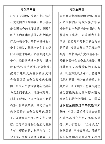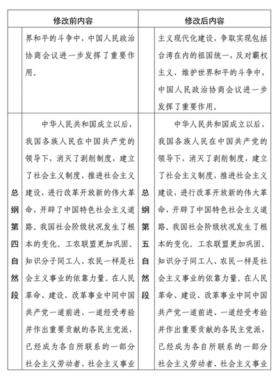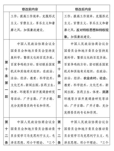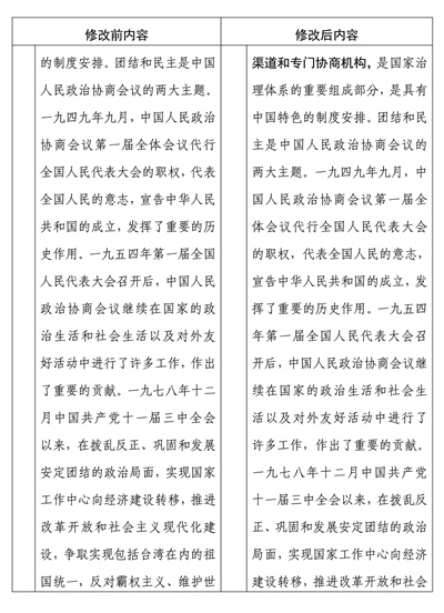 中國人民政治協(xié)商會(huì)議章程修改前后內(nèi)容對照表