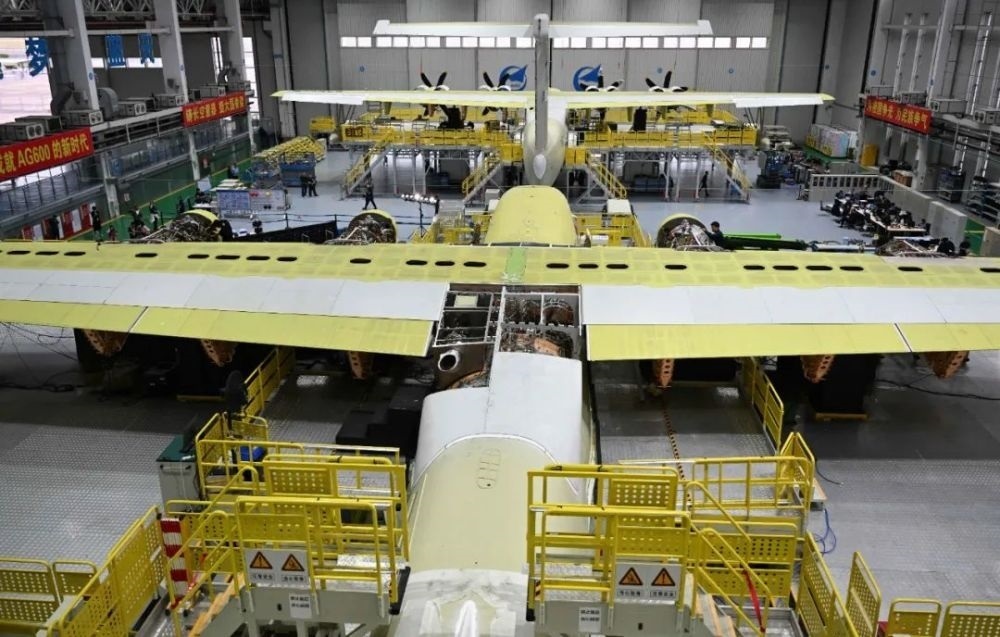 ▲ 在廣東珠海的中航通飛華南飛機(jī)工業(yè)有限公司總裝線上,AG600M 正在總裝(2022年11月7日攝)鄧華攝