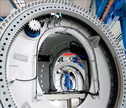 ▲ 在黑龍江省齊齊哈爾市中國一重集團(tuán)有限公司風(fēng)電裝備生產(chǎn)制造廠生產(chǎn)車間,工人進(jìn)行生產(chǎn)作業(yè)(2021年7月1日攝) 王建威攝