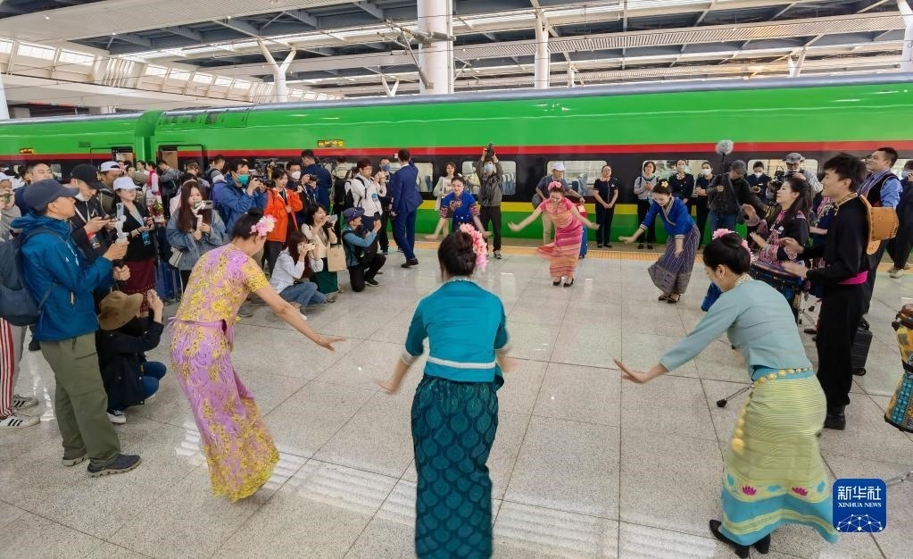當(dāng)日,中老鐵路開行國際旅客列車,昆明至萬象間可實(shí)現(xiàn)乘火車當(dāng)日通達(dá)。新華社記者 王長山 攝