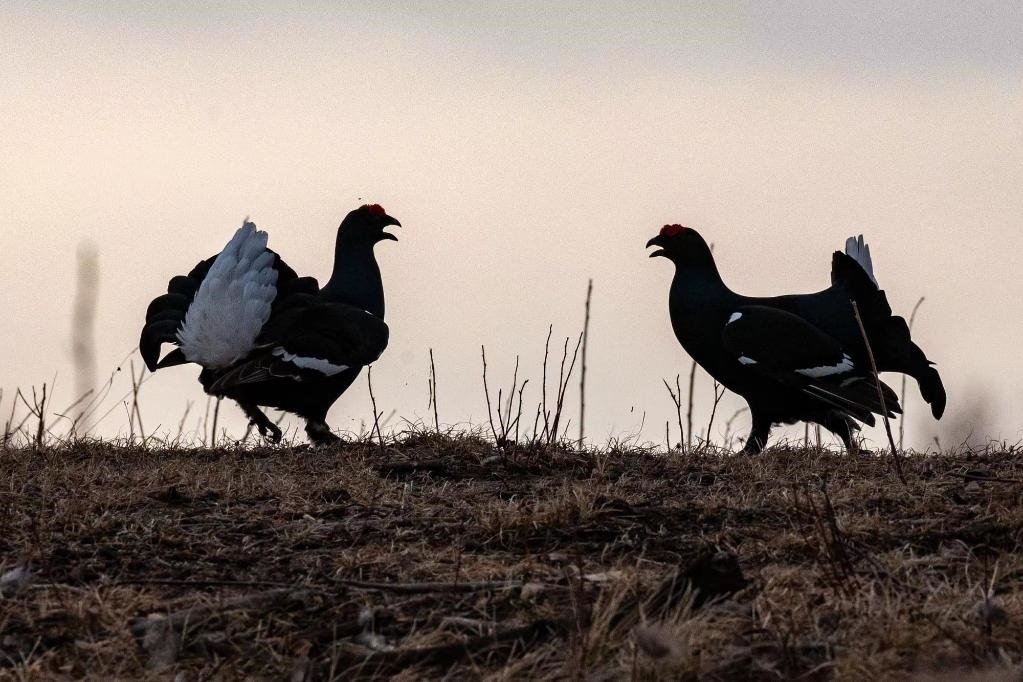 近來(lái)每天早上,天剛蒙蒙亮,黑琴雞就聚集在林間草地打斗。它們時(shí)而追逐對(duì)峙,時(shí)而鐵嘴啄眼,時(shí)而吼聲低沉,時(shí)而銳爪封喉,激烈的打斗場(chǎng)面吸引了眾多攝影愛(ài)好者和觀賞者。