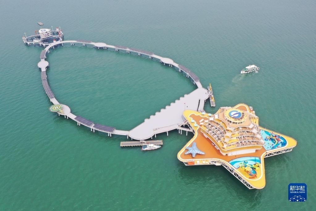 當日,位于山東省煙臺市萊山區(qū)的“耕海1號”海洋牧場綜合體二期項目投入運營?!案?號”集漁業(yè)養(yǎng)殖、海上觀光、休閑垂釣、餐飲住宿、科研科普等于一體,創(chuàng)新性實現(xiàn)現(xiàn)代海洋漁業(yè)、海洋工程技術和海洋文化旅游產業(yè)深度有機融合。新華社發(fā)(唐克攝)