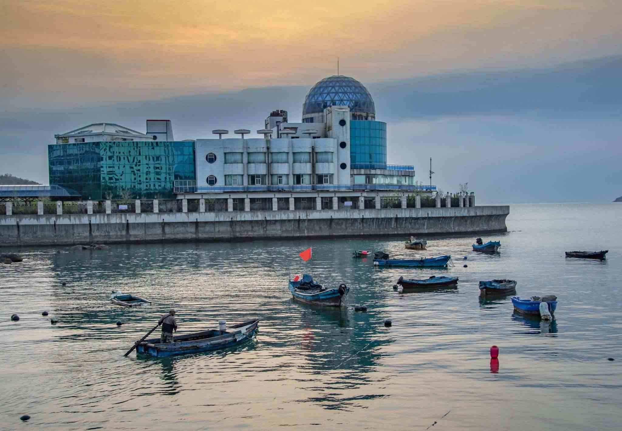 2023年4月29日,山東威海,威海灣在朝陽的映照下栩栩生輝,美景如畫。視覺中國
