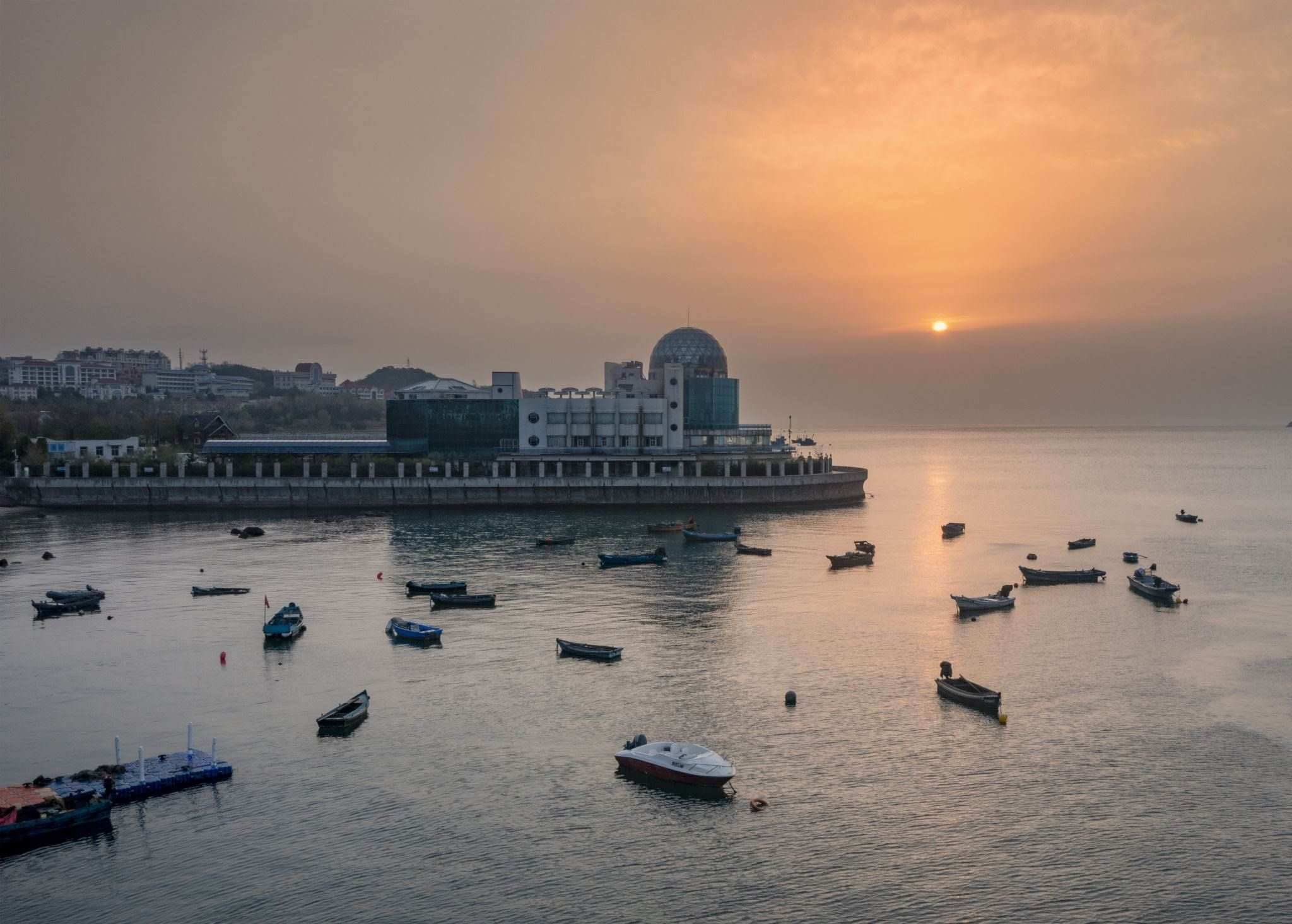 朝陽映照山東威海灣