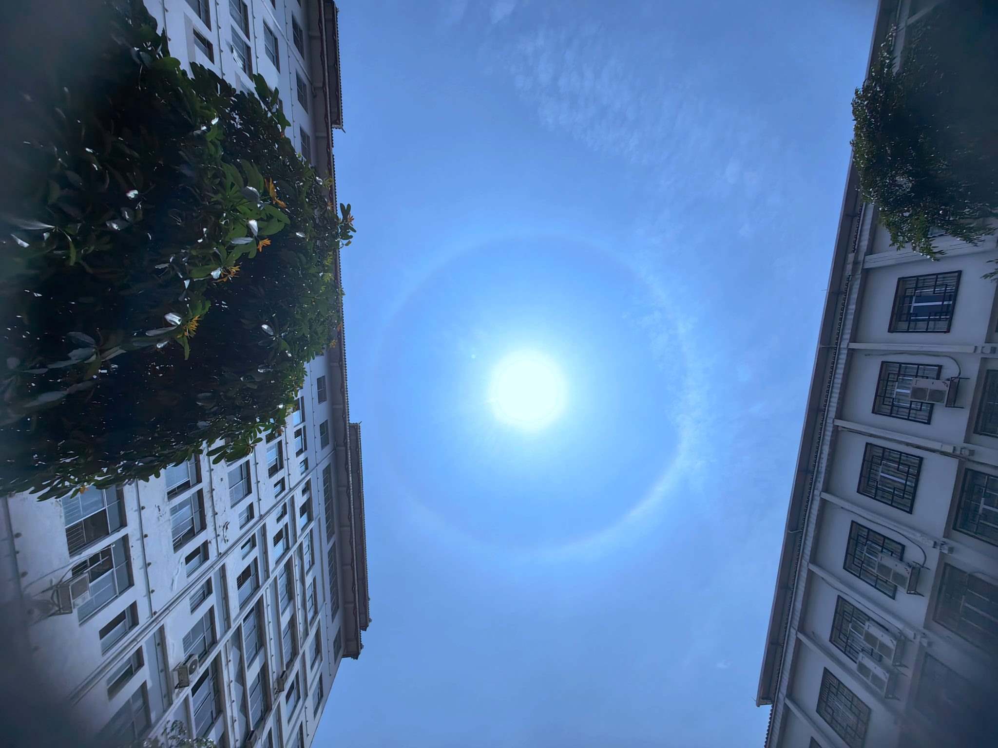 2023年4月30日,廣西來賓,忻城縣上空出現(xiàn)日暈景觀。視覺中國(guó)