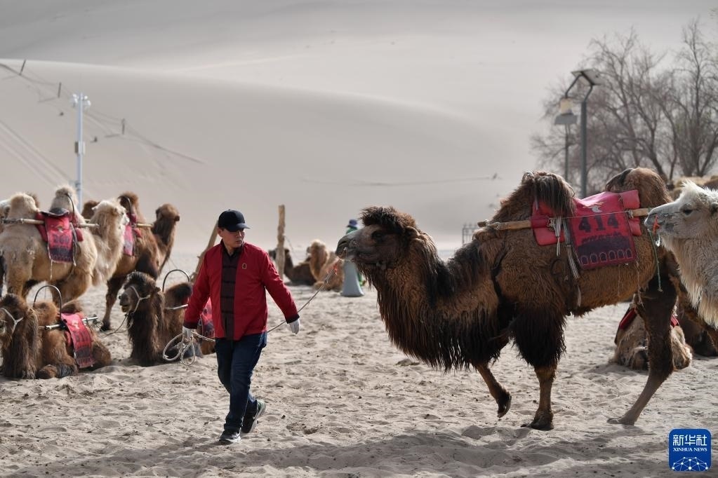騎著駱駝穿行大漠,遙想絲綢之路繁華盛景,是游客在甘肅敦煌的重要體驗(yàn)項(xiàng)目。在距敦煌鳴沙山月牙泉景區(qū)最近的月牙泉村,村民們馴養(yǎng)著2000多峰駱駝,編有700多個(gè)駝號(hào),這些特殊的“員工”每天輪流在鳴沙山月牙泉景區(qū)“上班”。