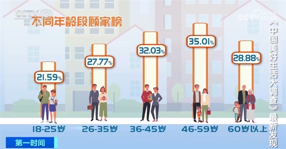 大調(diào)查發(fā)現(xiàn),46—59歲的中年人休閑時間陪伴家人的比例最高,其次是36—45歲人群。這兩個年齡段的人群,大都上有老下有小,家庭責(zé)任最大,一家人團團圓圓才是最美好的生活。