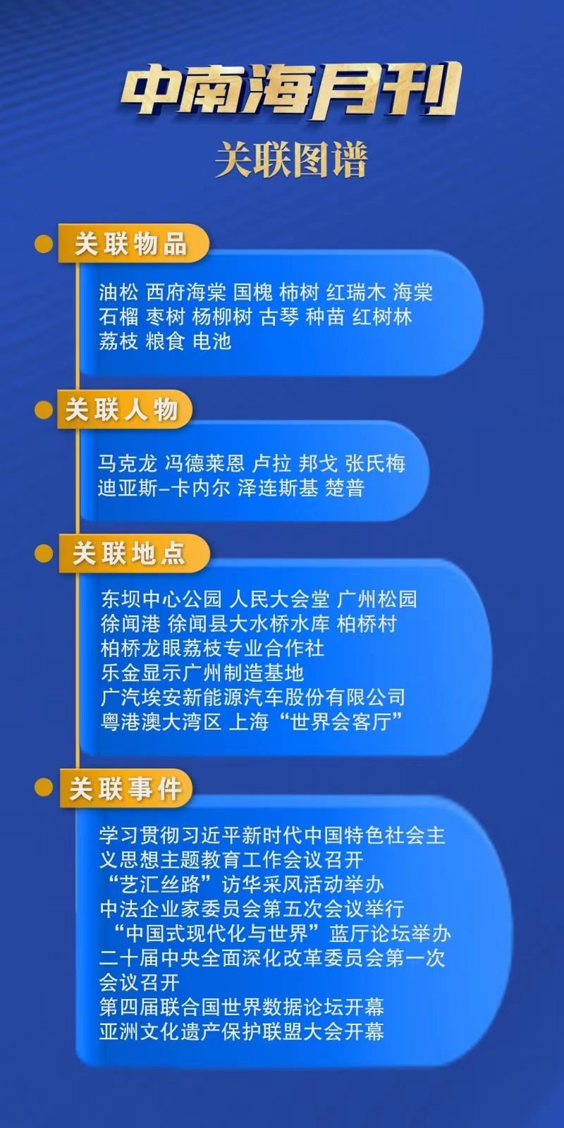 關聯(lián)地點中的徐聞港、柏橋村等指向總書記的考察地。今年是全面貫徹黨的二十大精神開局之年,習近平總書記兩會后首次地方考察選擇了廣東。他對廣東的干部群眾說:“廣東是一個窗口。到廣東來看一看,了解一下黨的二十大以來都有哪些新進展新氣象?!?/p>