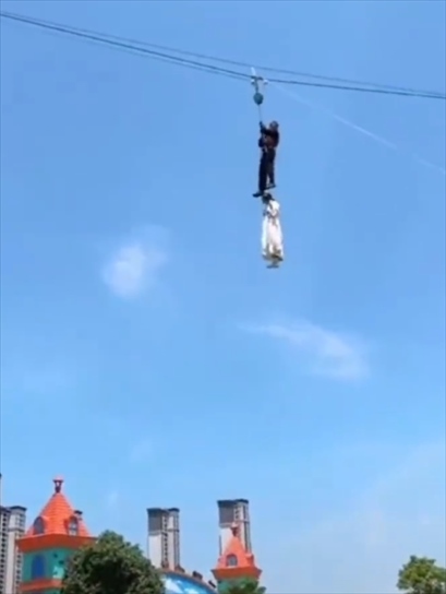 ·游樂場回應女演員吊威亞被掛半空:被防墜落裝置纏住了,十幾二十分鐘就被救下,人沒事。