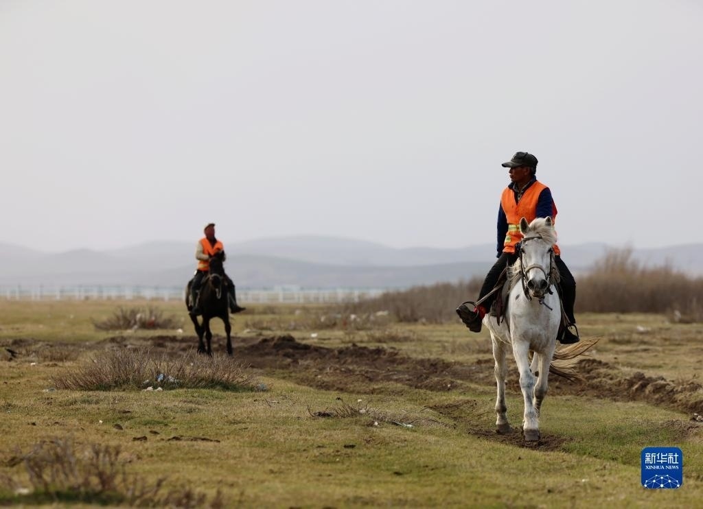 5月2日,河北省承德市豐寧滿族自治縣大灘鎮(zhèn)扎拉營村的護林員在海留圖國家濕地公園巡邏。