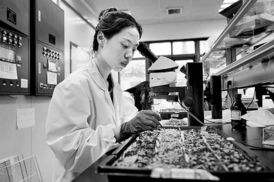 2022年8月7日,浙江農(nóng)林大學(xué)現(xiàn)代農(nóng)學(xué)院學(xué)生在實(shí)驗室開展科學(xué)研究。陳勝偉攝/光明圖片